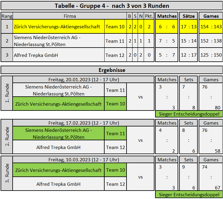 Tabelle Gruppe 4