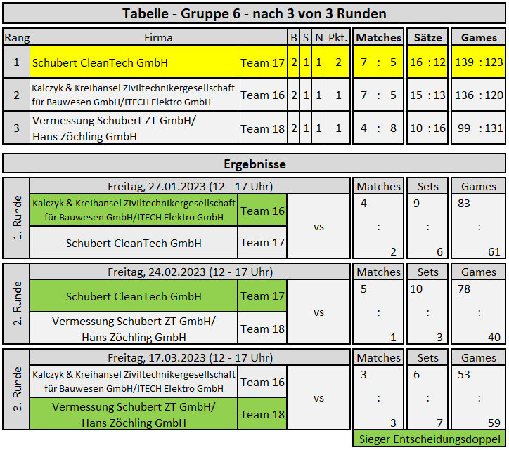 Tabelle Gruppe 6